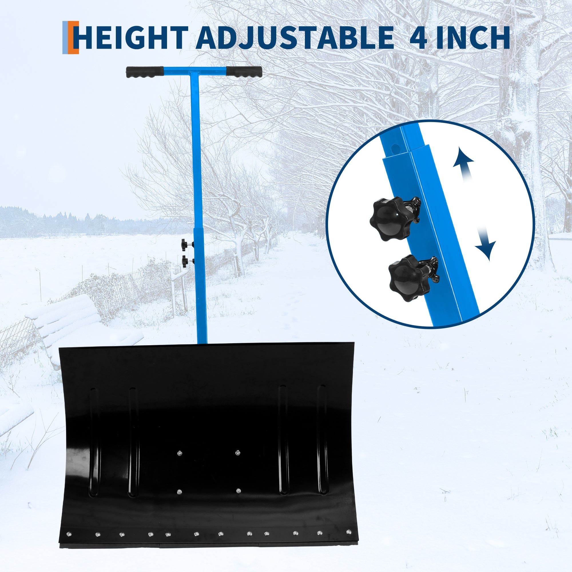 Garvee Snow Shovel with Wheels,29.1″ x 14.2″ Heavy Duty Snow Pusher for Driveway,Ergonomic Snow Pusher Shovel with Snow Removal Adjustable Angle & Height Handle for Driveway, Pavement,Blue
