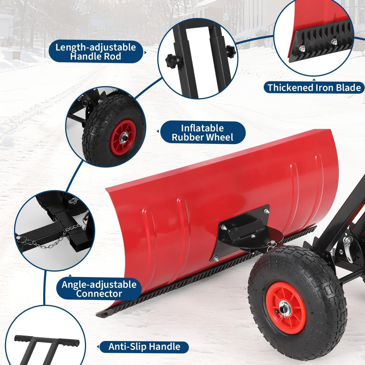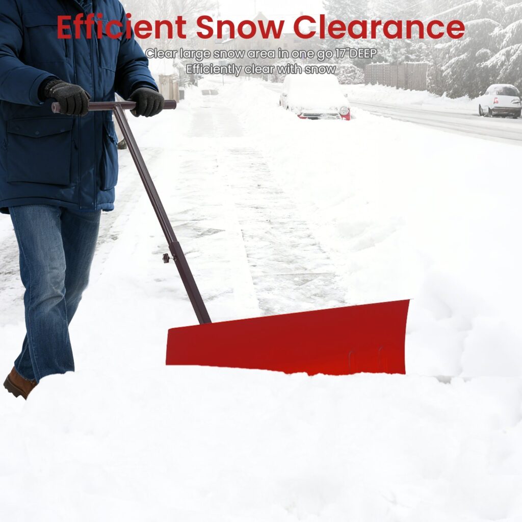 Garvee 29″W X 20″H Snow Pusher Shovel with Wheels,Heavy Duty Steel Snow Shovel with Wheels,Angled Blade Efficient Snow Removal With5-Position Angled Blade & Adjustable Handle for Doorway, Sidewalk