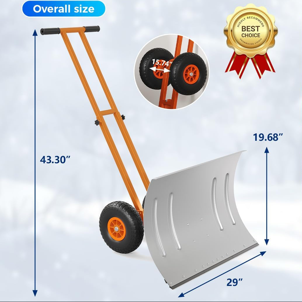 Garvee 29″W X 19.68″H Snow Pusher Shovel with Wheels,Heavy Duty Steel Snow Shovel with Wheels,Angled Blade Efficient Snow Removal With5-Position Angled Blade & Adjustable Handle for Doorway, Sidewalk,Sliver