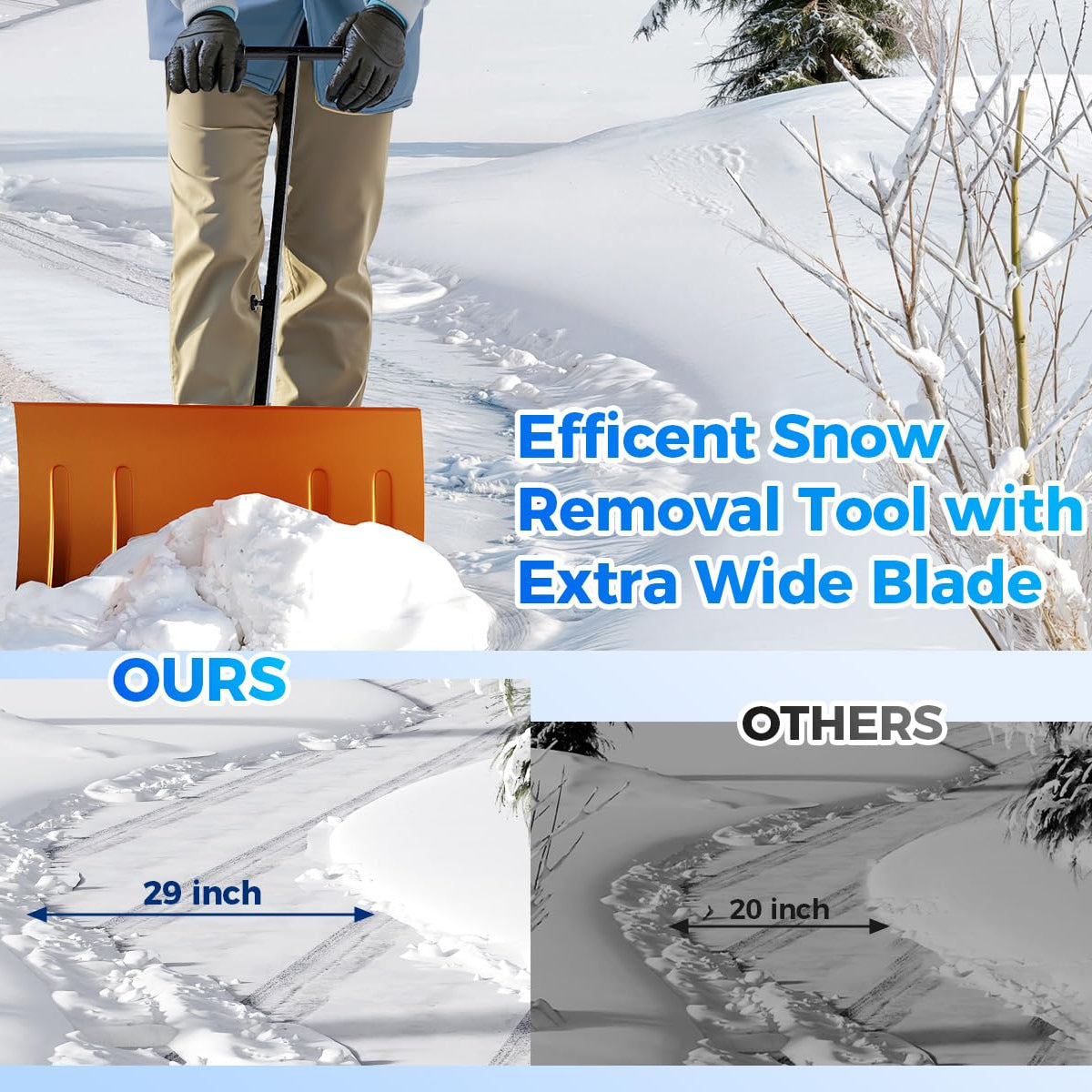 Garvee 29″W X 20″H Snow Shovel with Wheels Heavy Duty Steel 5-Position Adjustable Handle Anti-Skid Tires Quick Assembly for Driveway and Sidewalk