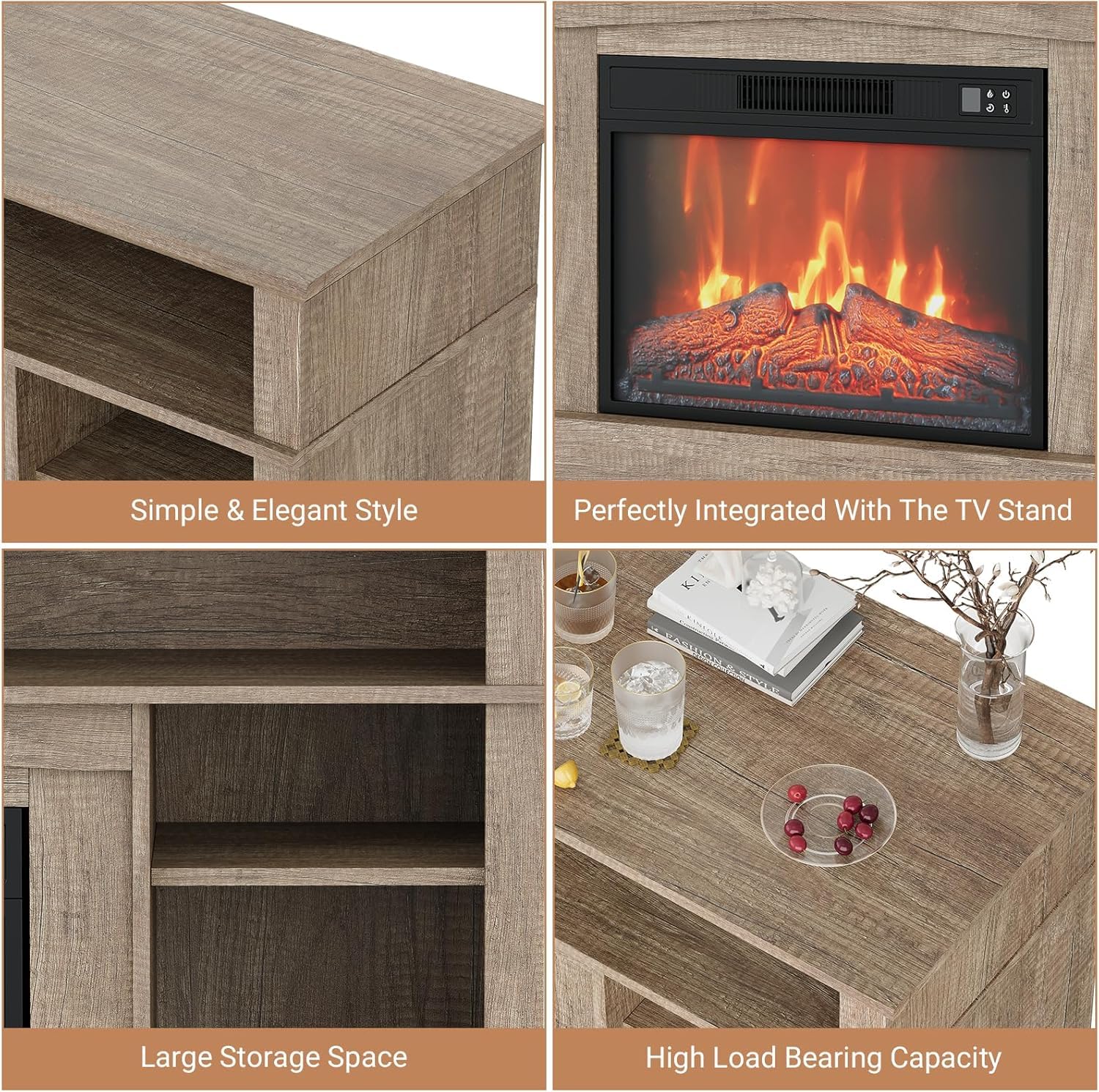 Garvee 58 Inch Farmhouse TV Stand With Electric Fireplace, Wood Entertainment Center Tv Console Cabinet With Open Storage Shelves, 23″ 1400W Fireplace With Remote Control 3 Level Adjustable Flame Timer