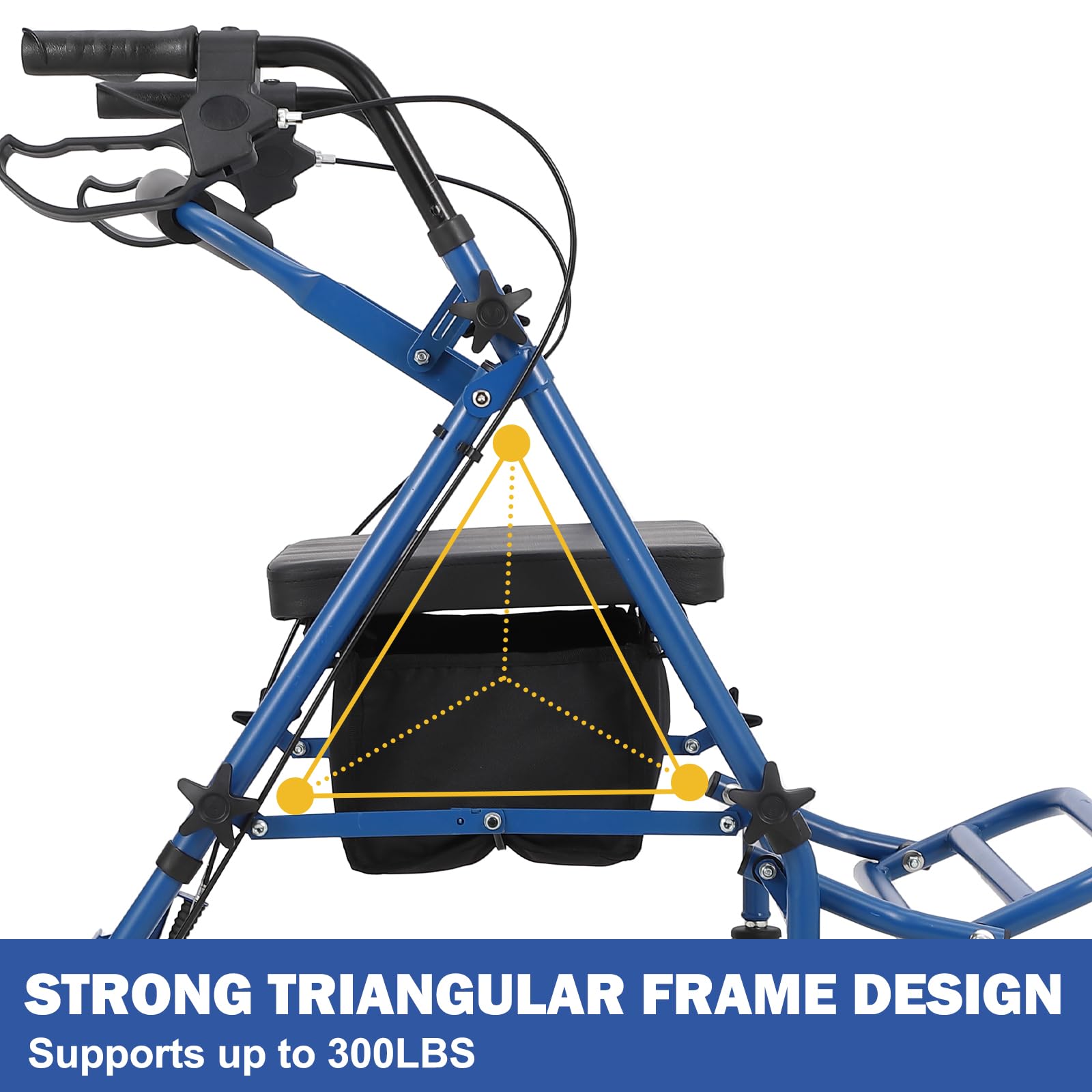 Garvee 2-in-1 Rollator Walker & Transport Wheelchair | 300lbs Capacity | Adjustable Height Mobility Aid for Seniors with Padded Seat & Foldable Footrest, Blue