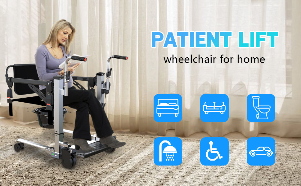 Garvee Heavy Duty Electric Patient Lift Chair Hoyer-Compatible Transfer Quiet & Electric Adjust suit for Home Hospital Nursing Use