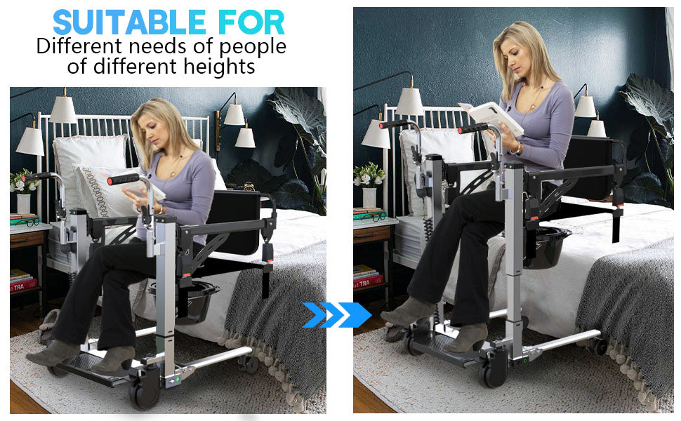 - Safe and Stable: Our Electric patient lift transfer chair features a robust, heavy-duty steel frame, ensuring maximum safety and stability during transfers. With a high-strength carbon steel pipe construction, it’s waterproof, corrosion-resistant, and supports up to 220lbs.