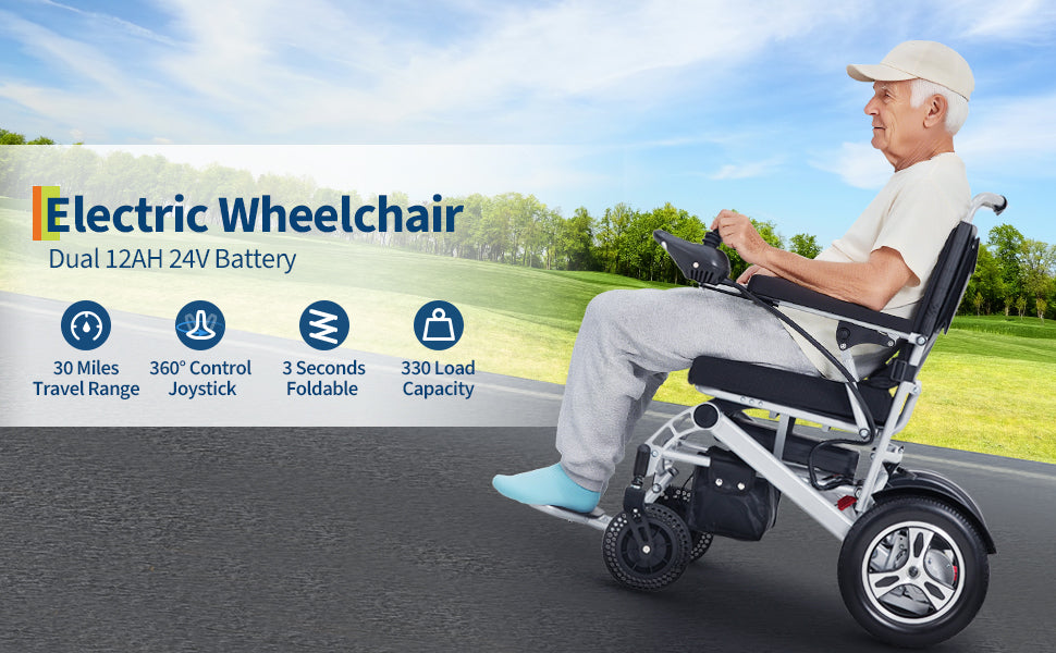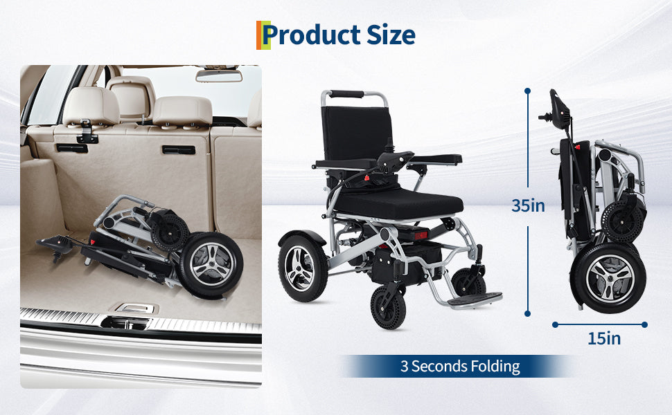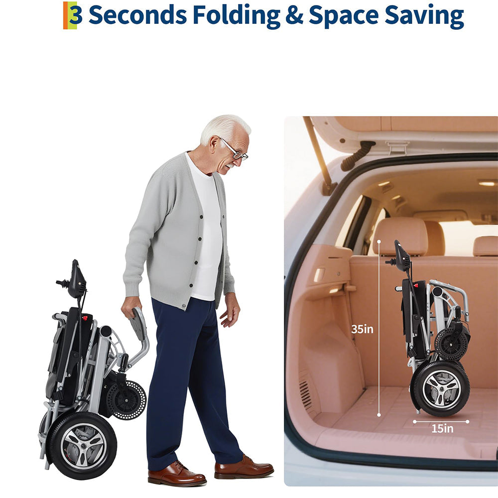- 【330 lbs Weight Capacity & 3-Second Fold】: Made of strong aviation aluminum alloy, this electric wheelchair supports users up to 330 lbs and folds easily within 3 seconds for compact car trunk storage and airline travel.