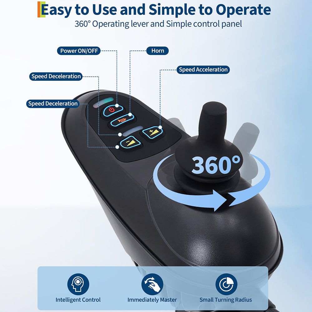 - 【Smooth 360-Degree Joystick Control】: The user-friendly joystick allows precise and smooth 360-degree direction control, helping elderly and users with limited mobility operate safely and comfortably.
