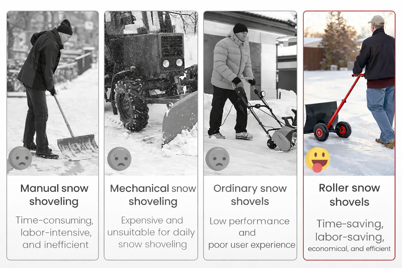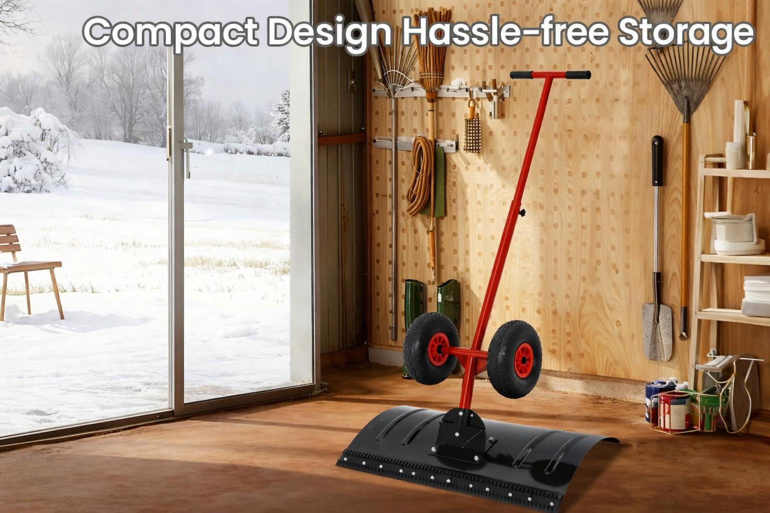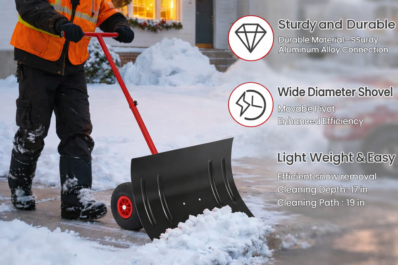 Garvee Heavy-Duty Snow Pusher with Wheels 30in Wide Blade 5-Position Adjustable Handle Steel Frame Anti-Slip Wheels Driveway Sidewalk