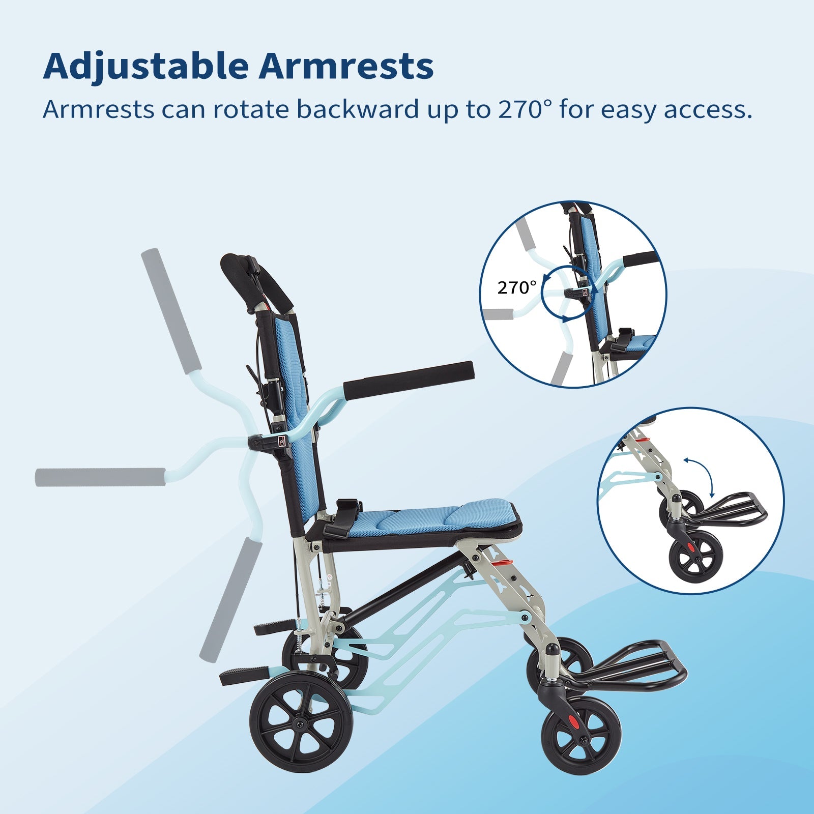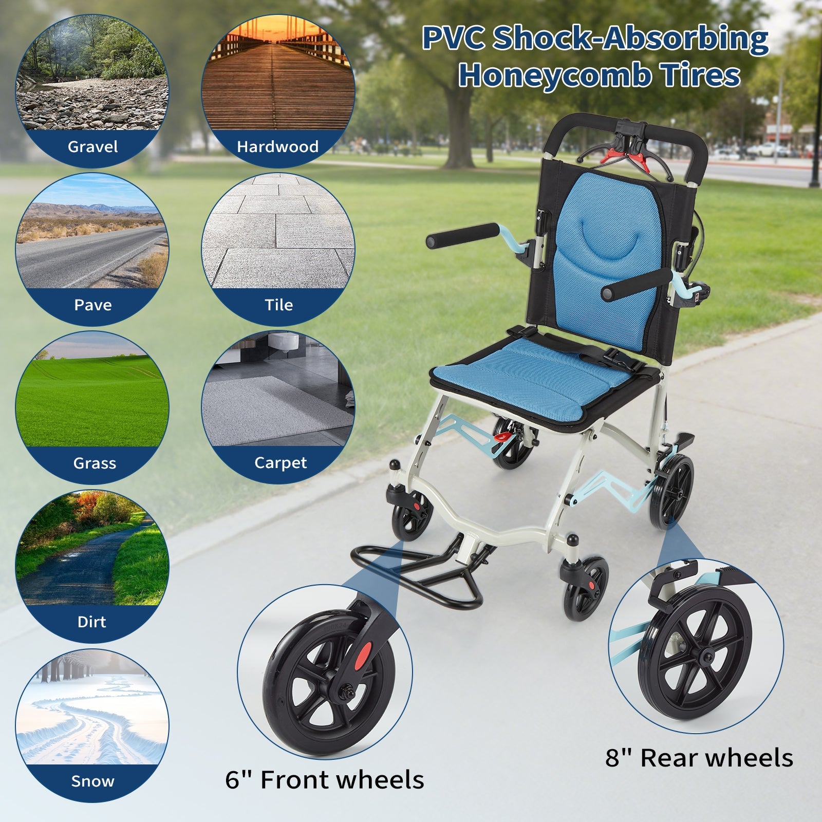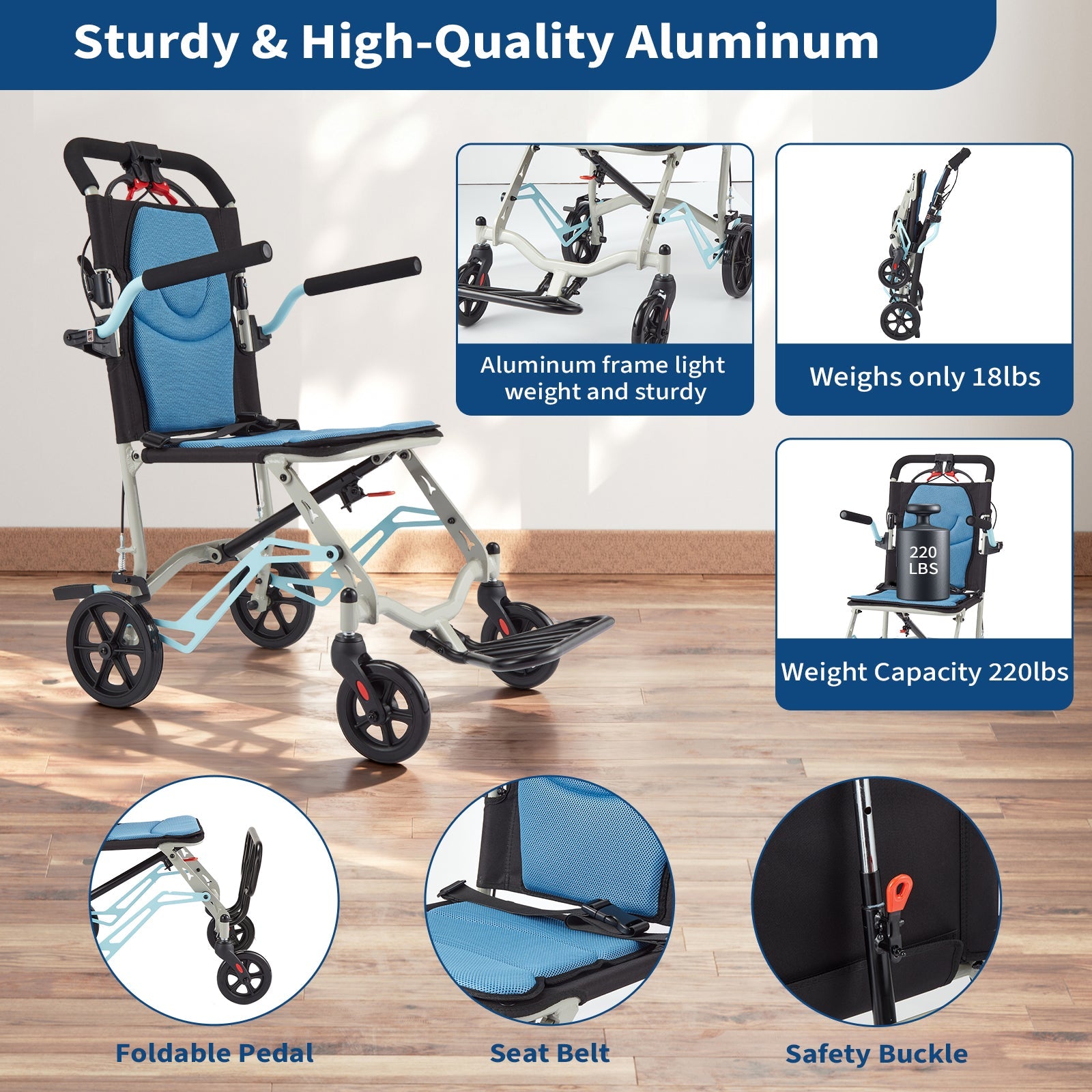 Garvee Lightweight Wheelchair with Locking Handbrake, Portable Folding Transport Wheelchair with Removable Flip Armrests & Swinging Footrests, Load Weight Up to 220 LB, for Travel, Camping, Airplane