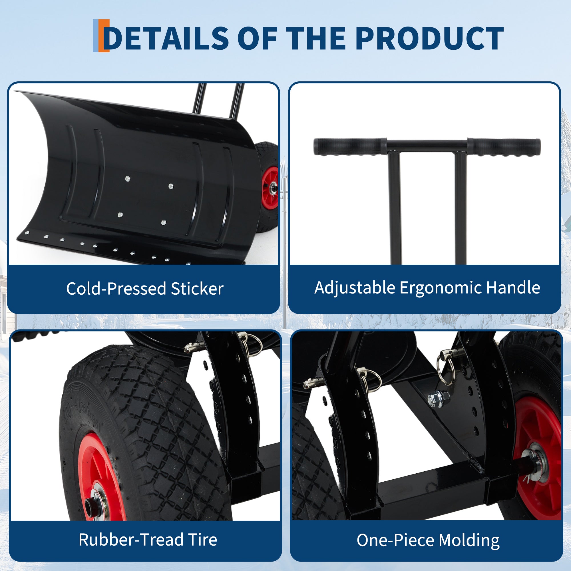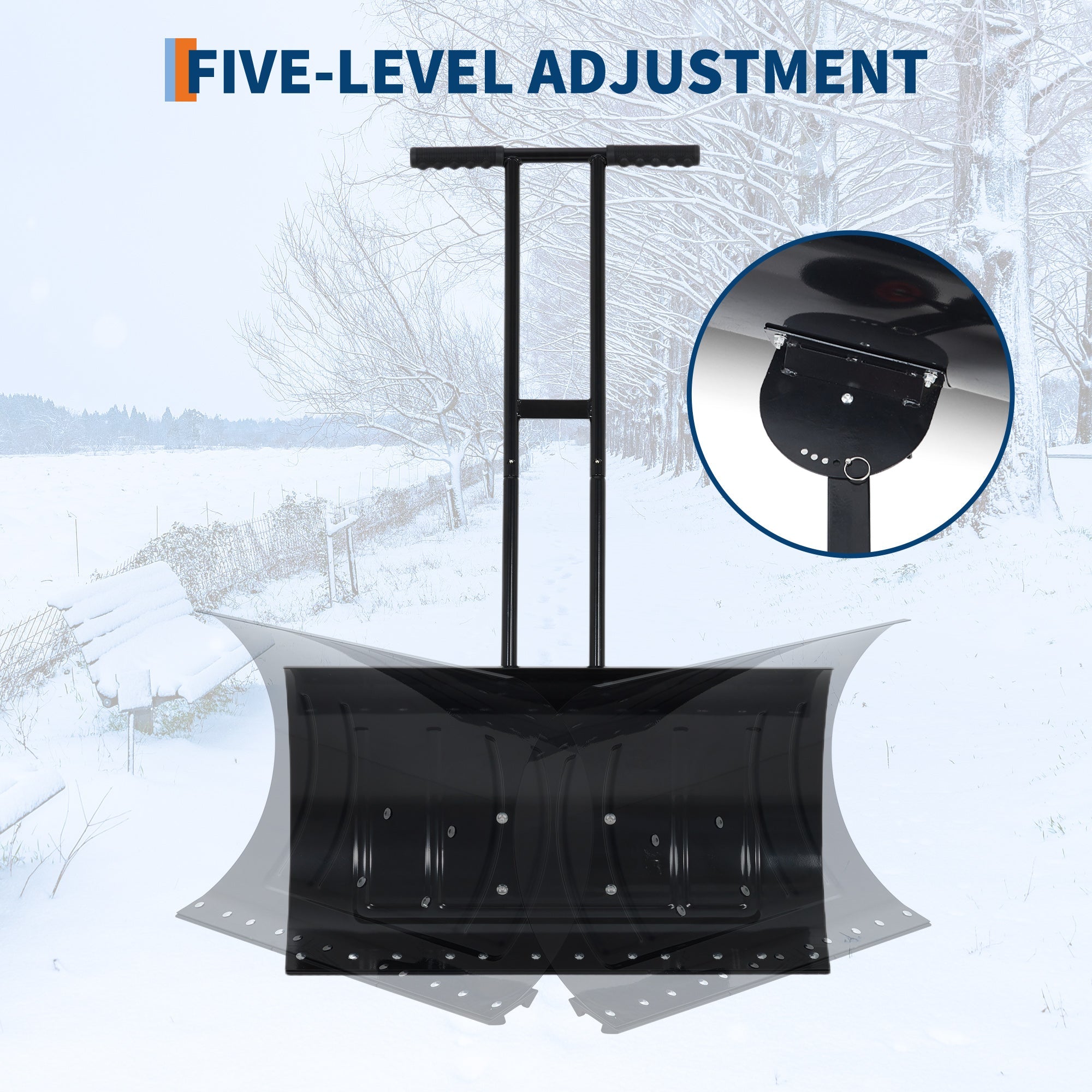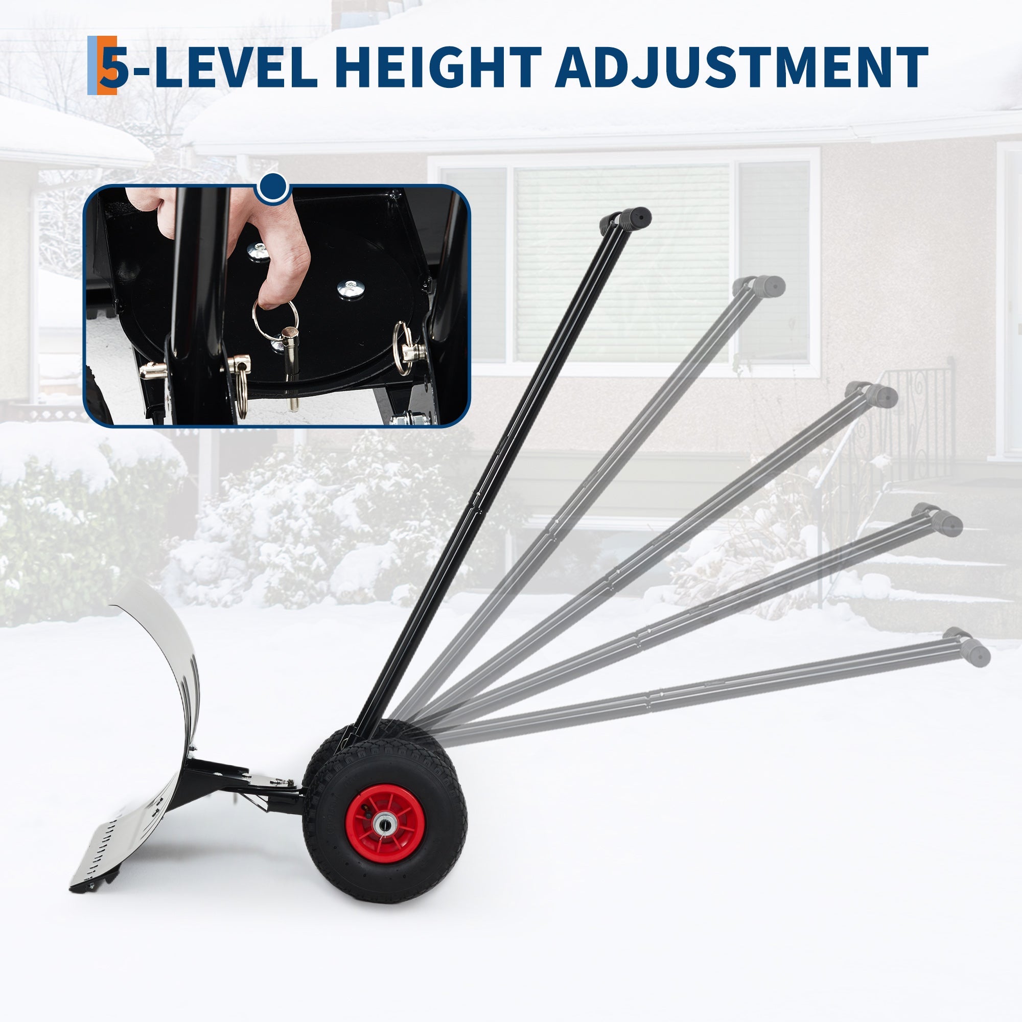Garvee Snow Shovel Pusher 39″ Wide with Adjustable Angle & Height Dual Rod Handle, Ergonomic Double-Rod Metal Frame, Anti-Slip Wheels for Driveways and Sidewalks