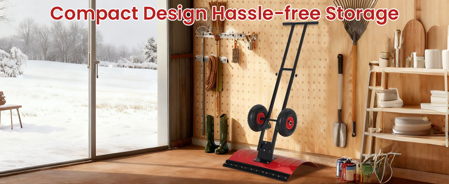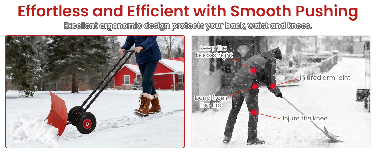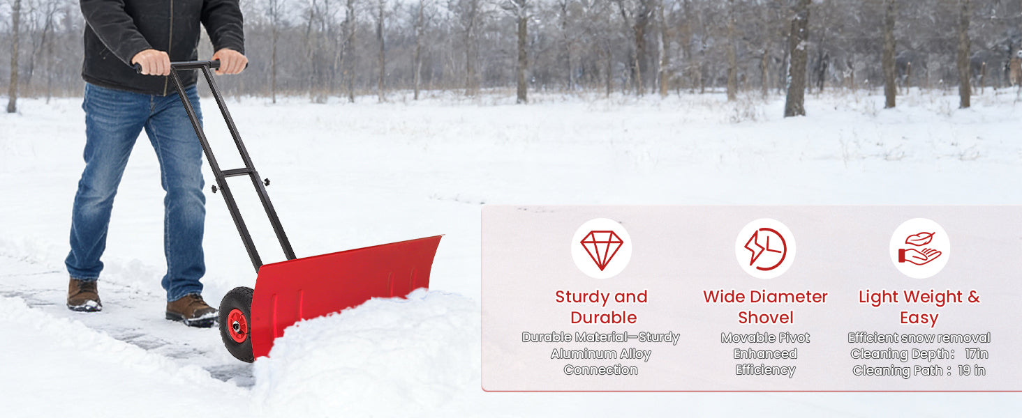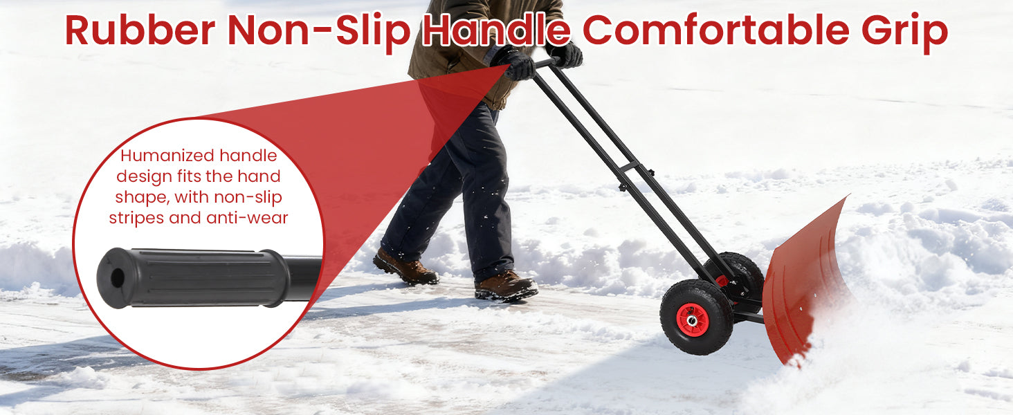 Garvee 29″W X 19.8″H Snow Shovel with 7-Position Angled Blade & Adjustable Handle, Heavy Duty Metal Snow Pusher Shovel with Wheels for Driveway, Doorway, Sidewalk, Pavement