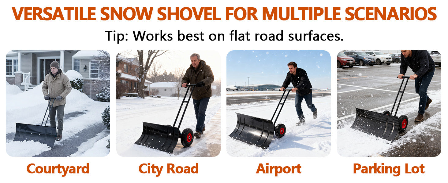 Garvee Snow Shovel 29″W X 14.2″H with 7-Position Angled Blade & Adjustable Handle, Heavy Duty Metal Snow Pusher Shovel with Wheels for Driveway, Doorway, Sidewalk, Pavement