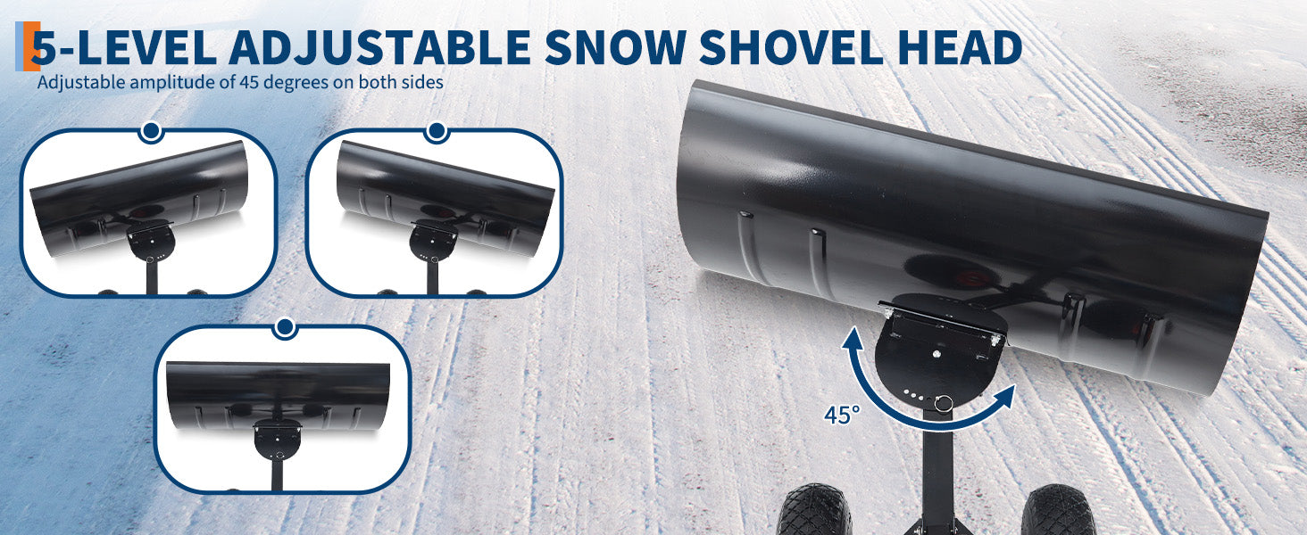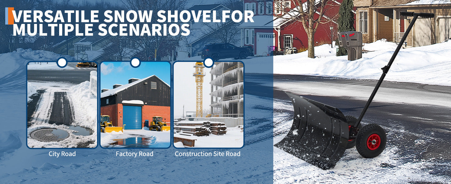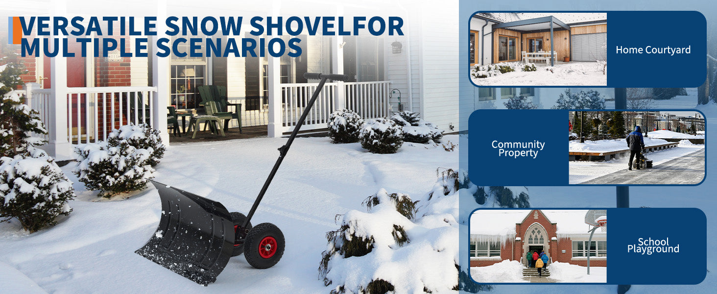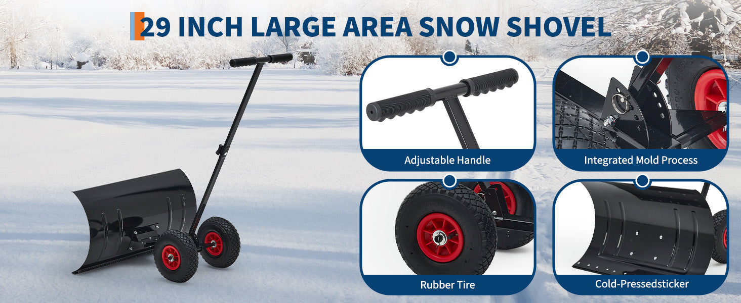 Garvee Snow Shovel with Wheels 29″ Wide Adjustable Single Blade & Handle Metal Blade Inflatable Wheels Easy Install for Driveway & Sidewalk