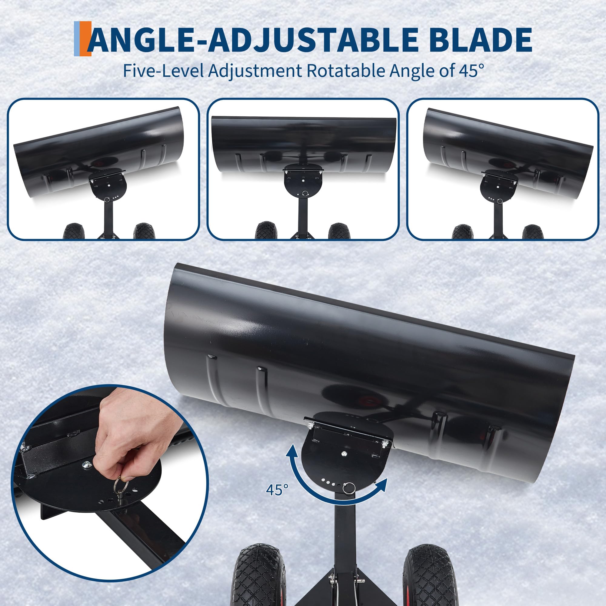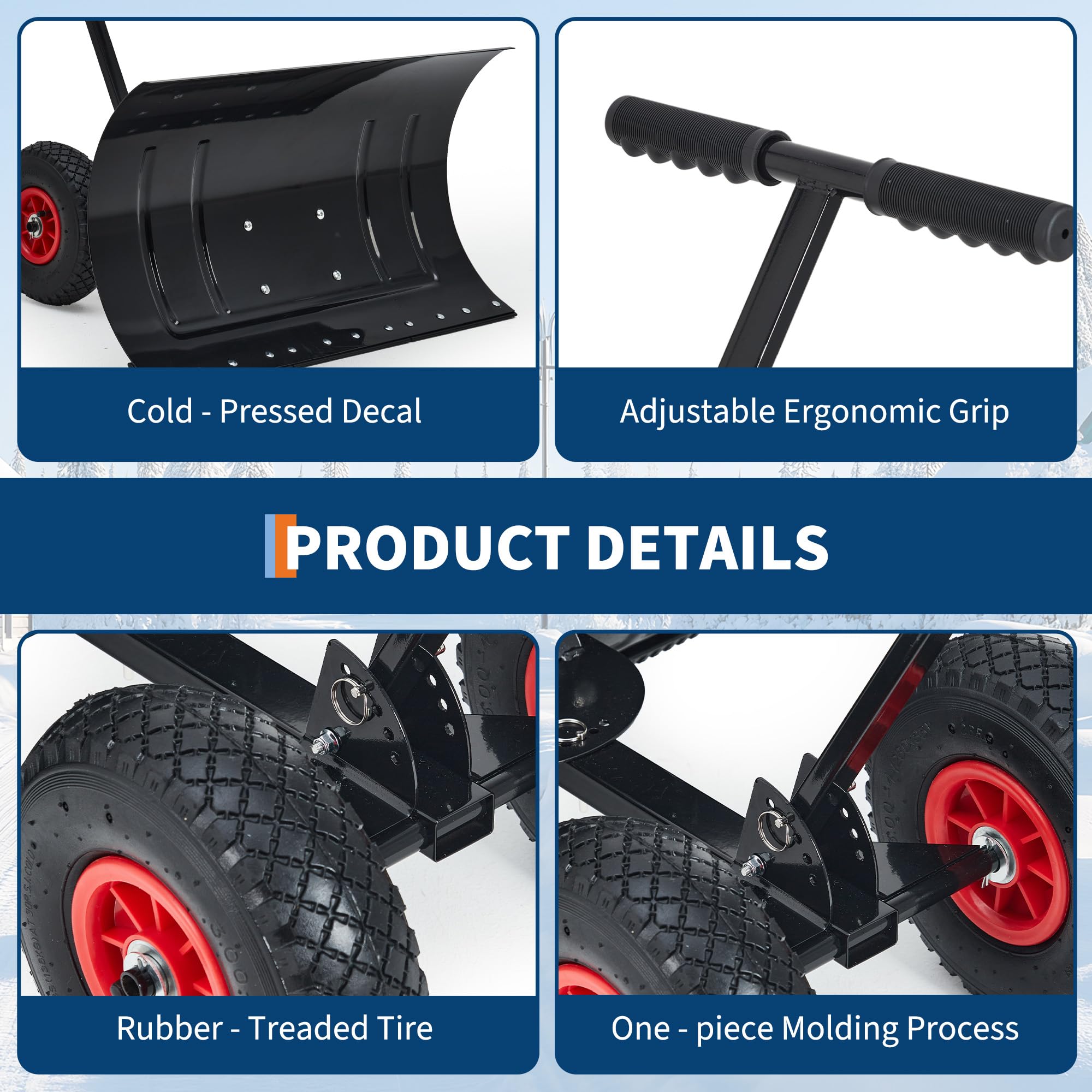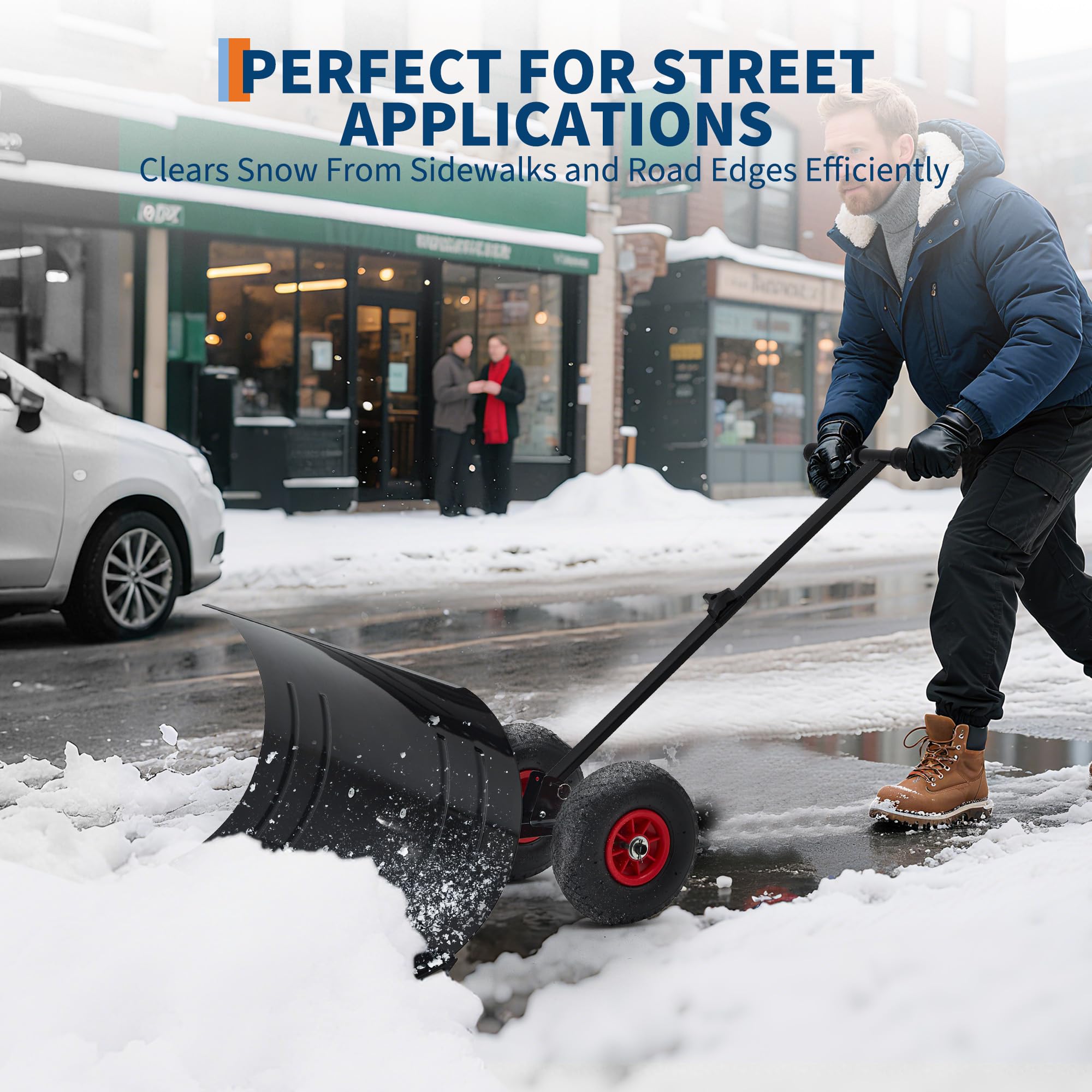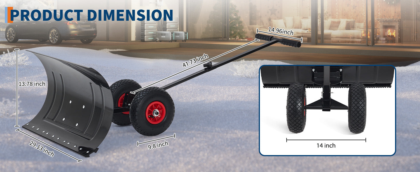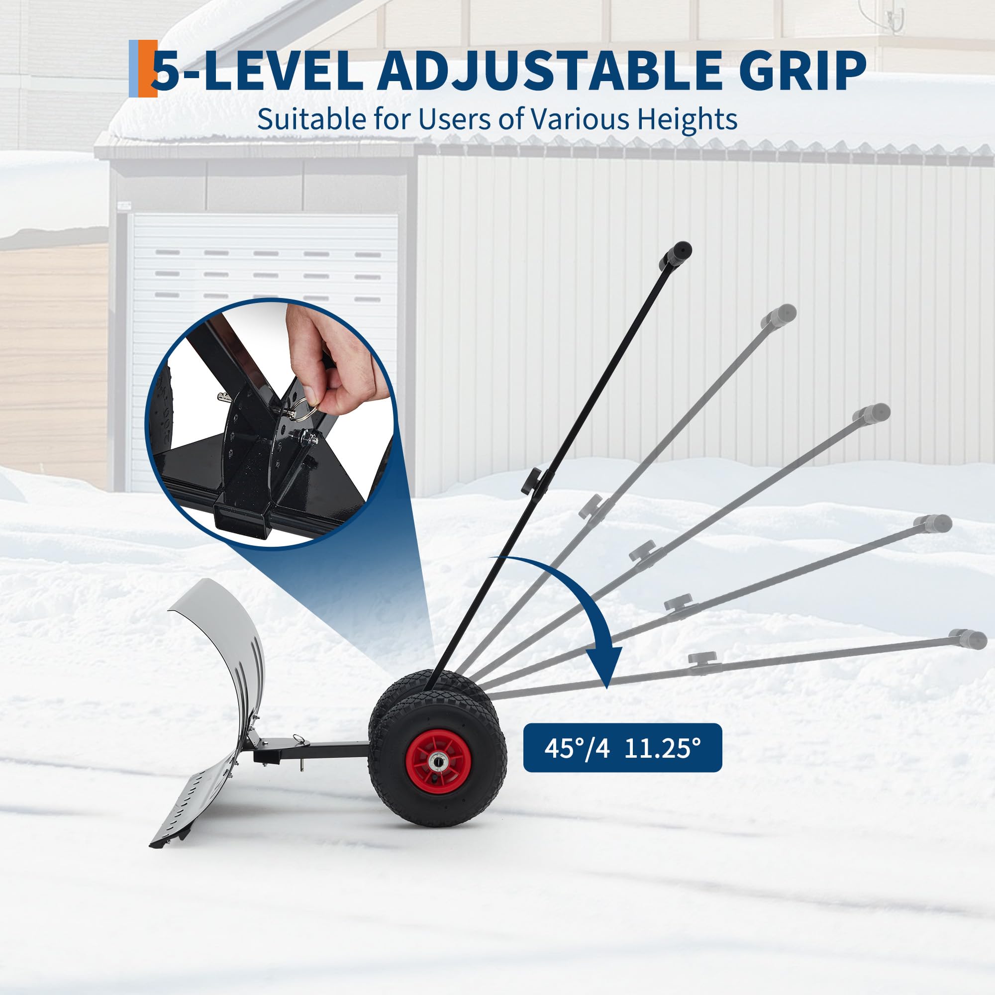 Garvee Snow Shovel with Wheels 29″ Wide Adjustable Single Blade & Handle Metal Blade Inflatable Wheels Easy Install for Driveway & Sidewalk