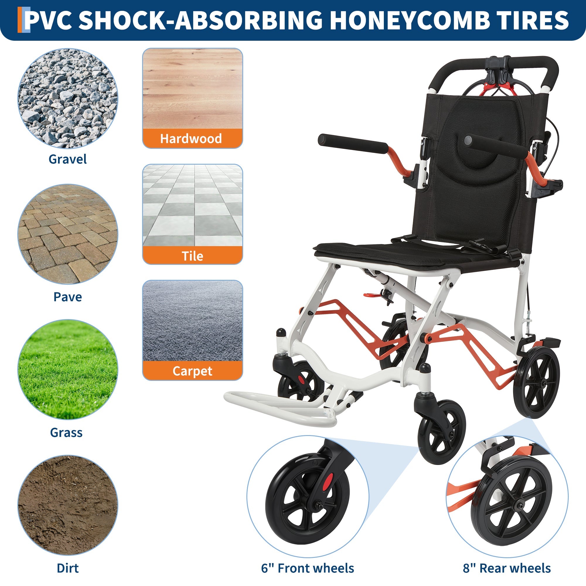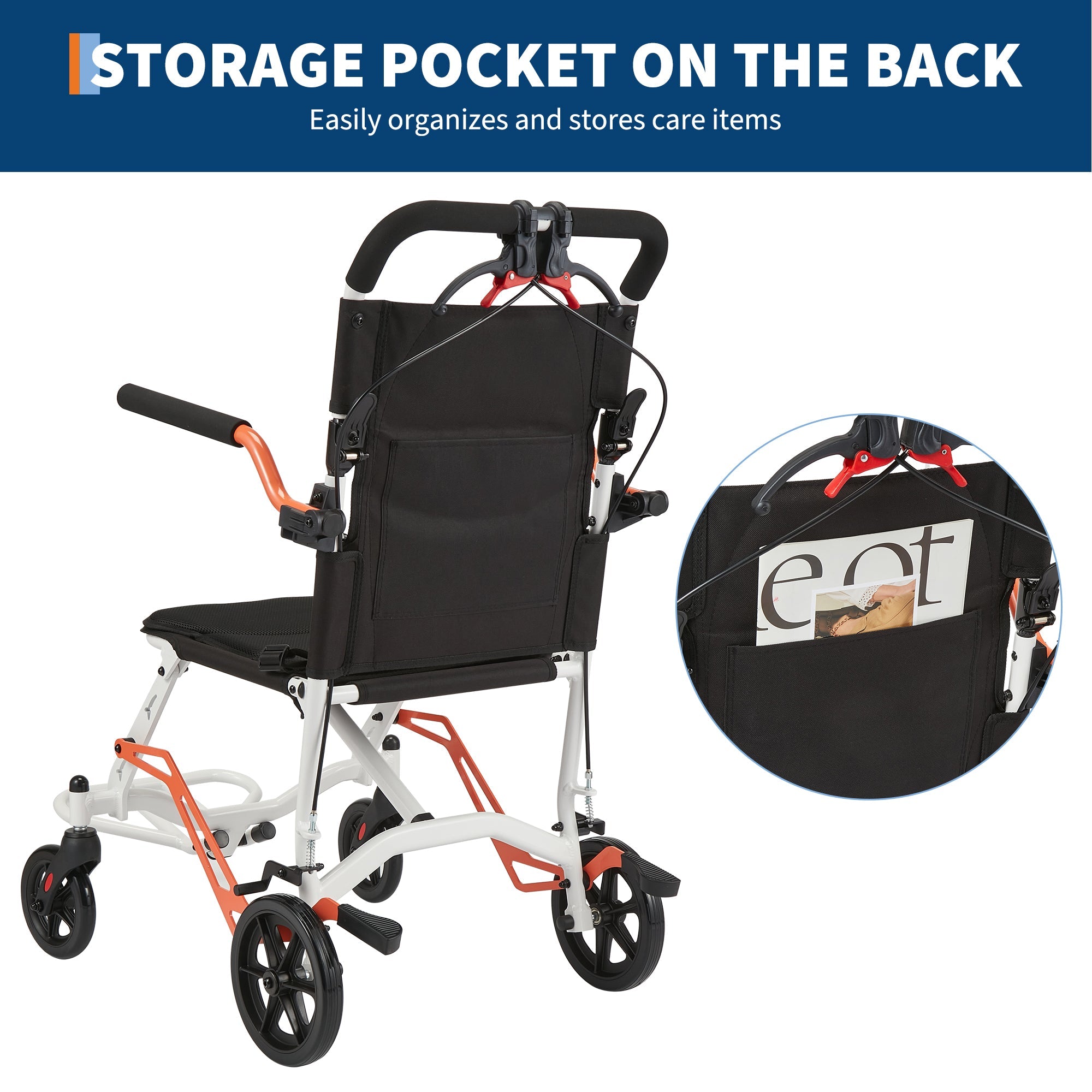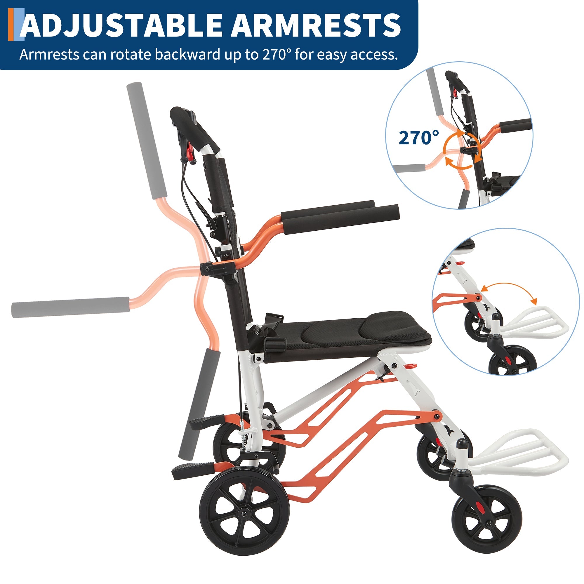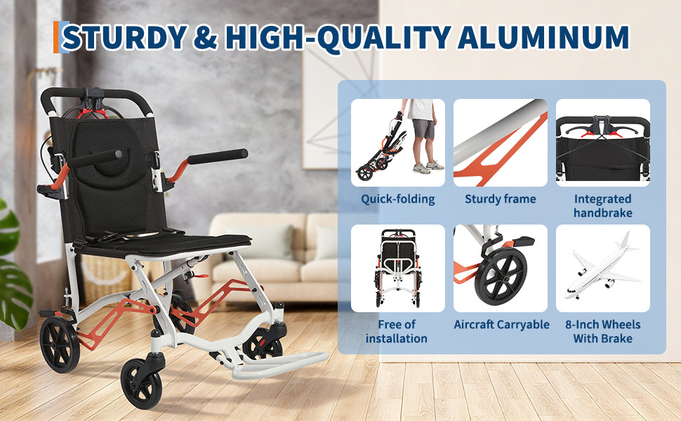 Garvee Ultra Lightweight 18 lbs Transport Wheelchair, Portable Folding Chair with Locking Handbrake, Removable Flip-Back Armrests & Swing-Away Footrests, Supports 220 lbs